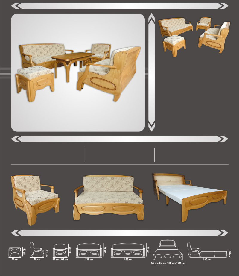модел "ЕМКО":фотьойл - разтегателен; диван двоен - разтегателен; диван троен - разтегателен, табуретка